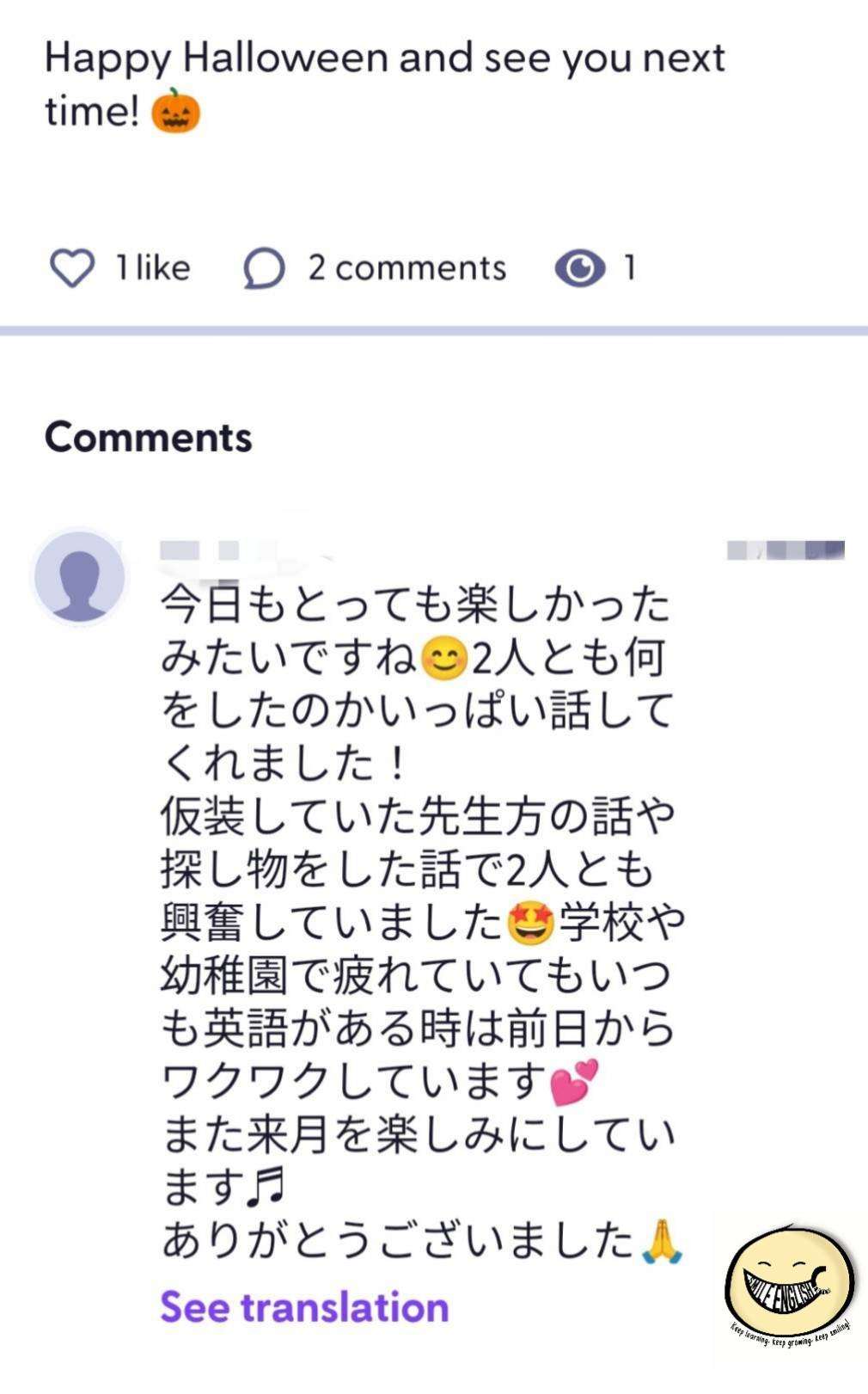 「うちの子はレッスン前日から明日英語あるよね?とそわそわして、待ちきれない様子なんです。